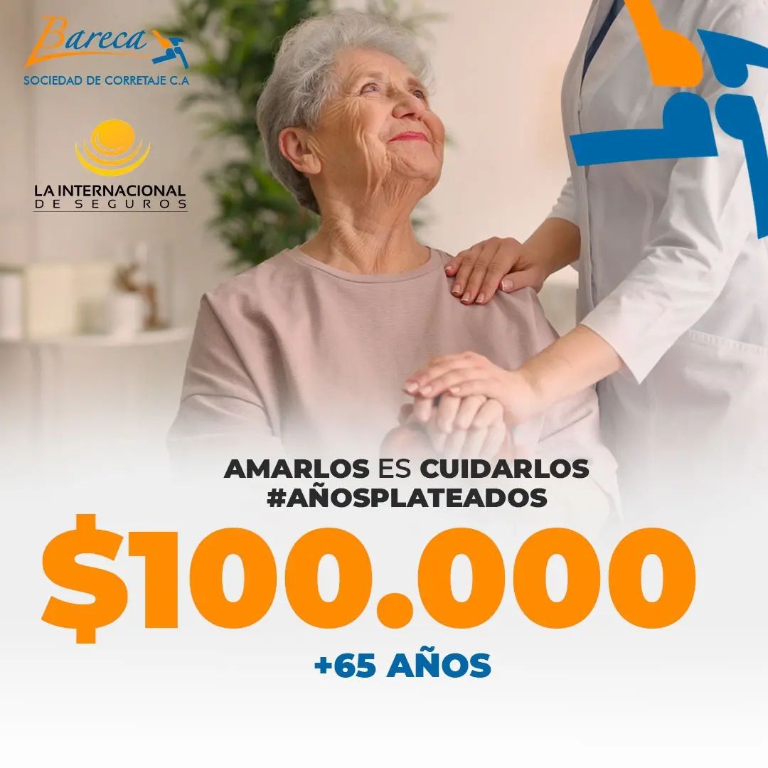 A partir de los 65 años ya ellos saben que pueden contar con un respaldo de hasta $100.000 con la póliza de salud de años plateados que Bareca te ofrece. ¡Pensamos en su seguridad y tranquilidad! Contáctanos y con mucho gusto te facilitaremos toda la información que necesitas, ¡Cotiza con nosotros! Nuestro número telefónico es el siguiente ⬇️⬇️ 0424 - 3473119 Contamos con oficinas a Nivel Nacional.